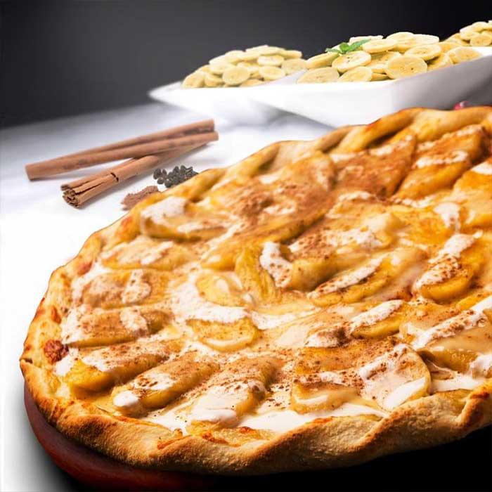 mussarela, banana,leite condensado e canela.